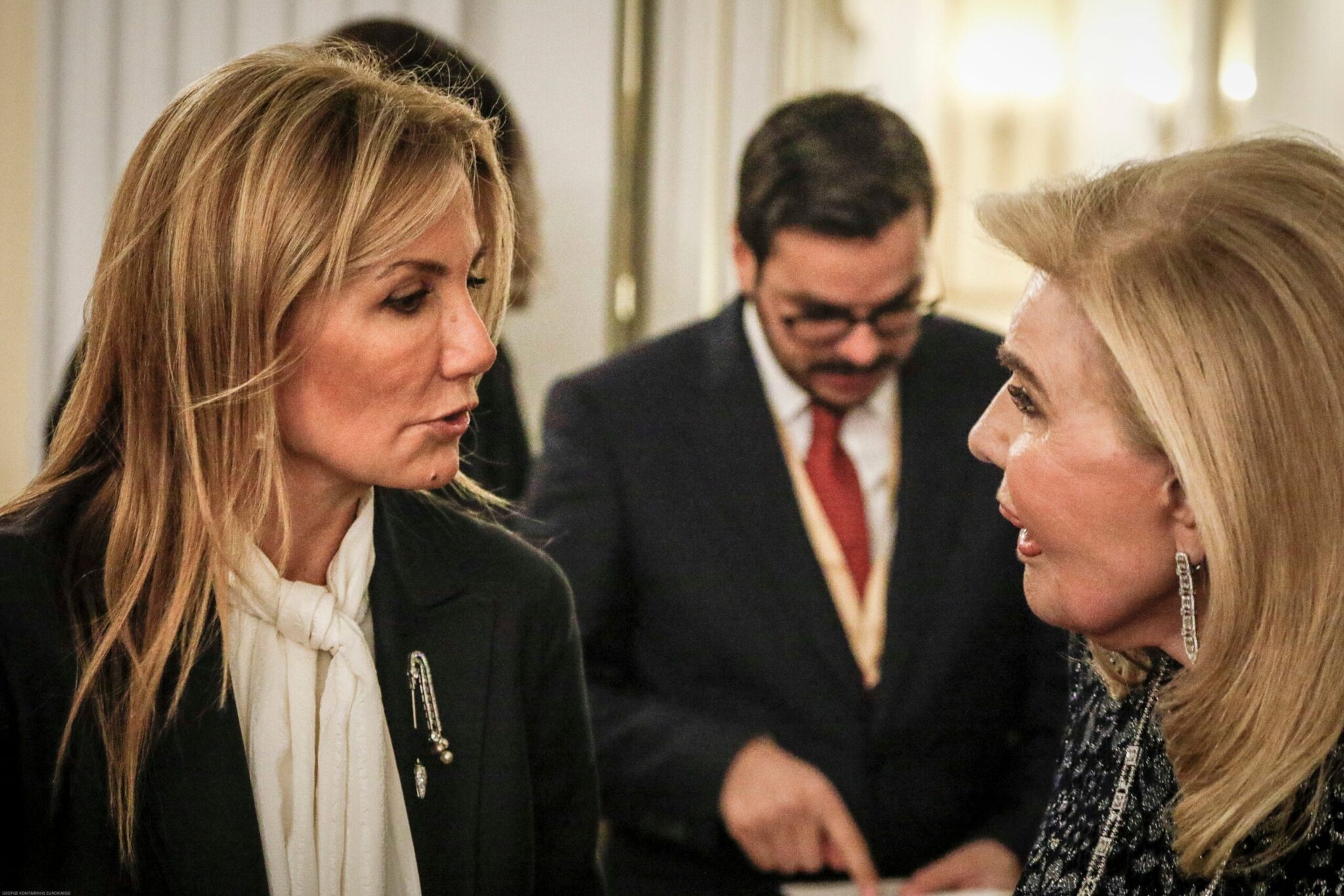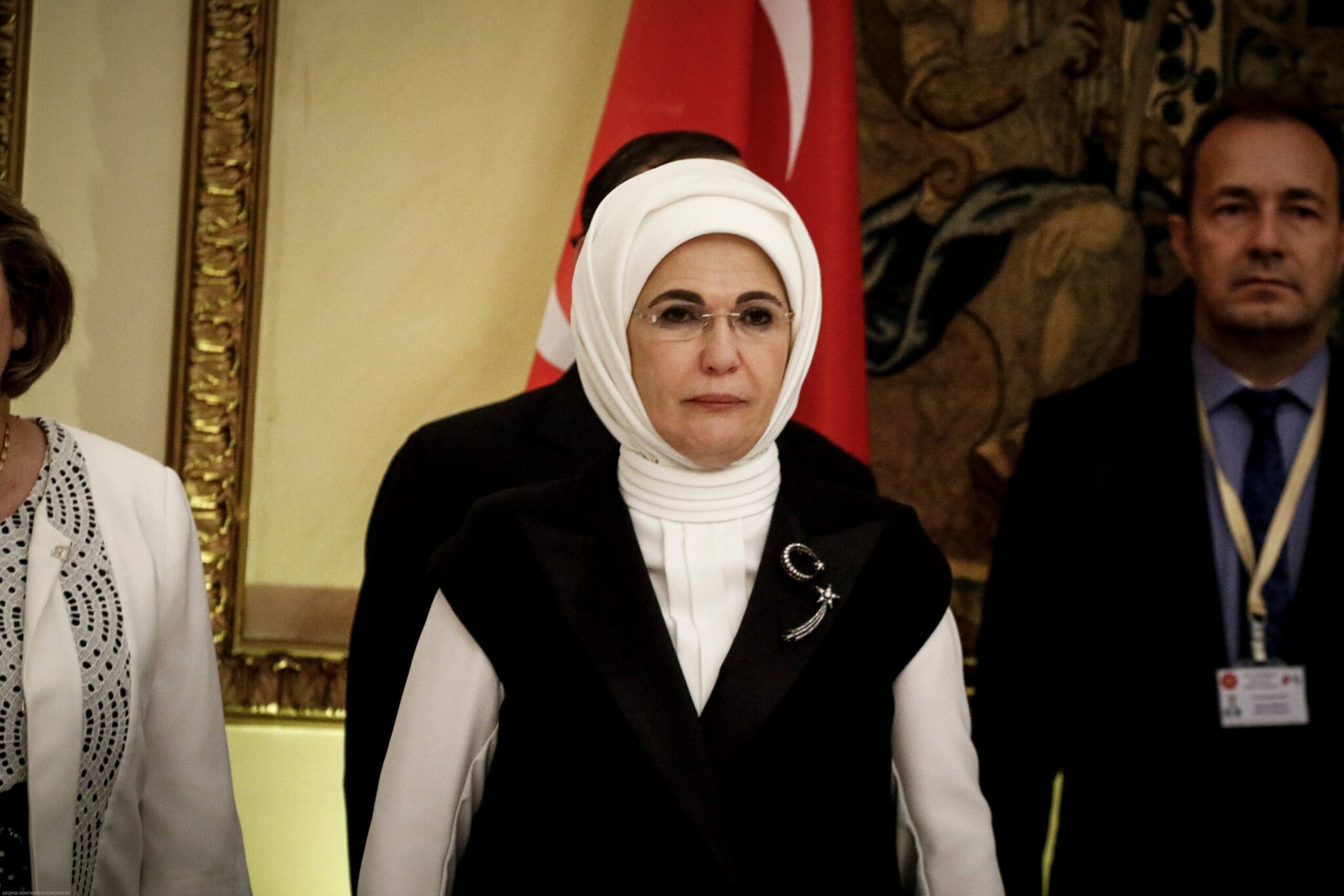 Μέχρι πριν από λίγες ώρες ήταν άγνωστο εάν θα συνοδεύσει τον σύζυγό της η Εμινέ Ερντογάν στο δείπνο, αφού μέσα στην ημέρα, λόγω αδιαθεσίας, ακύρωσε όλο το πρόγραμμά της. Πάντως, είχε την ευκαιρία να συναντήσει τη σύζυγο του πρωθυπουργού, Μπέττυ Μπαζιάνα, στο ξενοδοχείο που διαμένει.