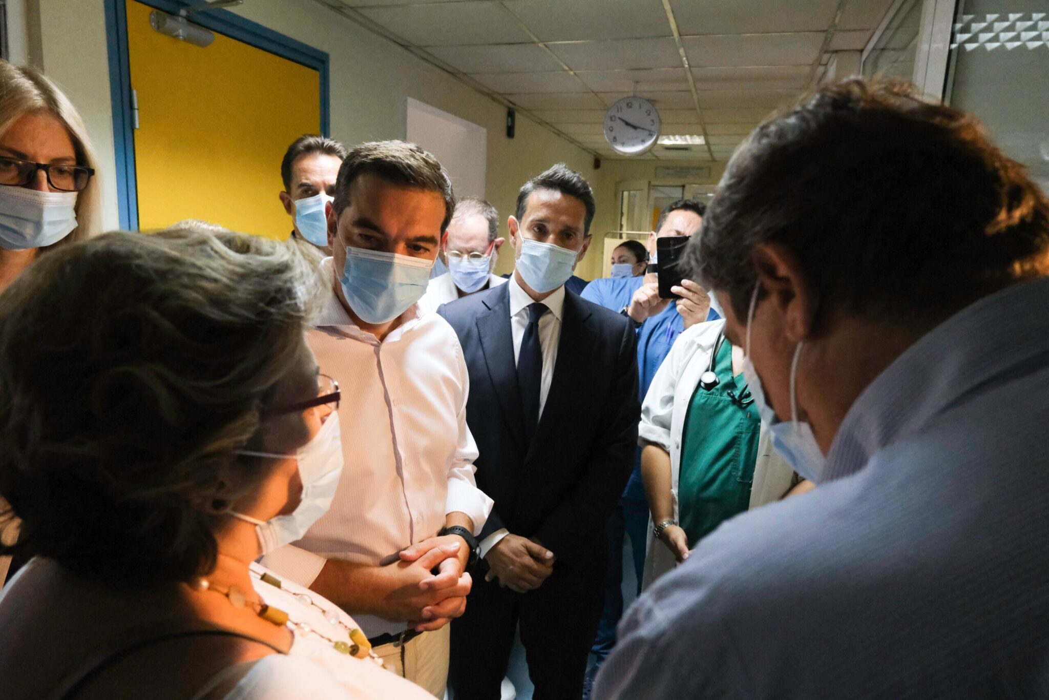 Κατά τη συνάντηση με τους εργαζόμενους του νοσοκομείο, ο πρόεδρος του ΣΥΡΙΖΑ άσκησε κριτική στην κυβέρνηση λέγοντας ότι δεν υπήρξε ούτε μία πρόσληψη μόνιμου ιατρικού και νοσηλευτικού προσωπικού σε όλη τη διάρκεια της πανδημίας και αυτό, όπως είπε, είχε ως αποτέλεσμα, λόγω και των συνταξιοδοτήσεων, σήμερα να έχουμε 6.000 λιγότερους υπαλλήλους στο ΕΣΥ σε σχέση με το 2019 που δεν υπήρχε η πανδημία.