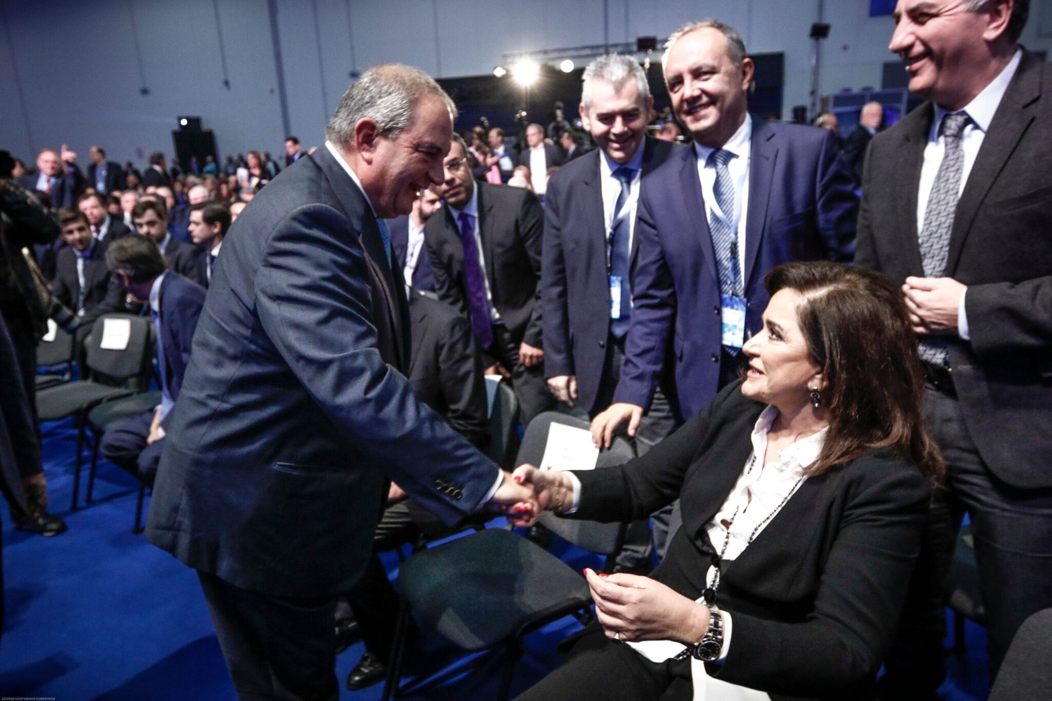 Ειδική αναφορά έκανε στους πρώην προέδρους της ΝΔ: «Είναι εδώ οι πρώην πρόεδροι της παράταξης. Ο Κώστας Καραμανλής που έφερε την ΝΔ στην εξουσία μετά από 11 χρόνια και της έδωσε λαϊκό έρεισμα. Ο Αντώνης Σαμαράς που κράτησε την Ελλάδα όρθια μέσα στην Ευρώπη και αν ολοκλήρωνε την θητεία του, η πατρίδα θα ήταν σε πολύ καλύτερη κατάσταση. Ο Βαγγέλης Μεϊμαράκης που κράτησε τη ΝΔ σε μία πολύ κρίσιμη στιγμή της και είναι πάντα μαχητής στα δύσκολα. Δίνουν μήνυμα νίκης, προσήλωσης και πίστης σε μία παράταξη που τους τίμησε και την τίμησαν».