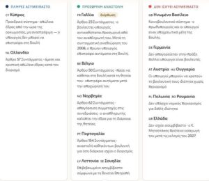 Ακολουθεί ένας πίνακας (Infographic) για να διευκολύνει την κατανόηση των διαφοροποιήσεων στην Ευρώπη (το γράφημα δημιουργήθηκε με χρήση Τεχνητής Νοημοσύνης).