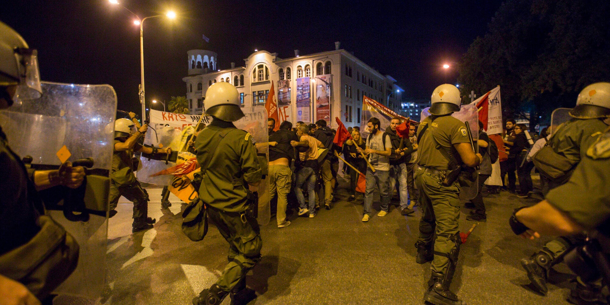 Συλλαλητήριο ενάντια στο συνέδριο «Thessaloniki Summit» την ώρα της ομιλίας του Αλέξη Τσίπρα