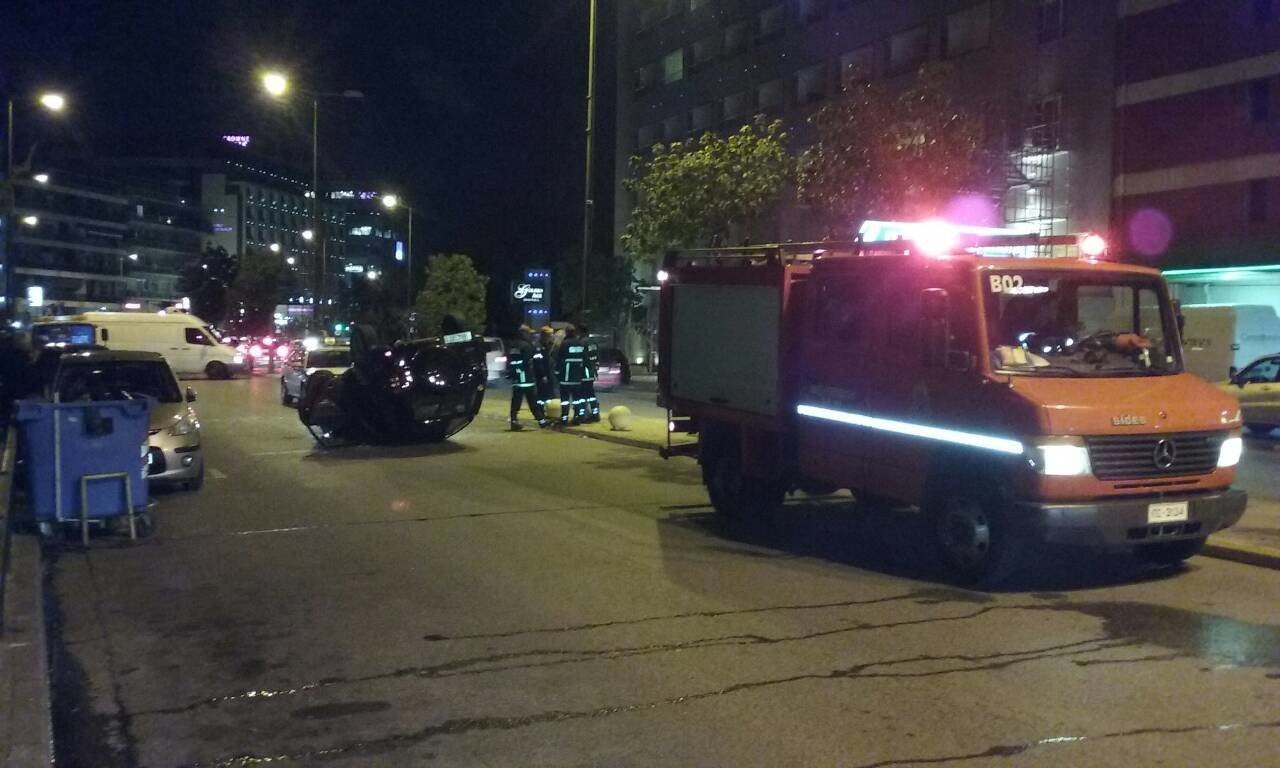 Κυκλοφοριακό χάος στη Μιχαλακοπούλου. Αναποδογύρισε αυτοκίνητο από τροχαίο
