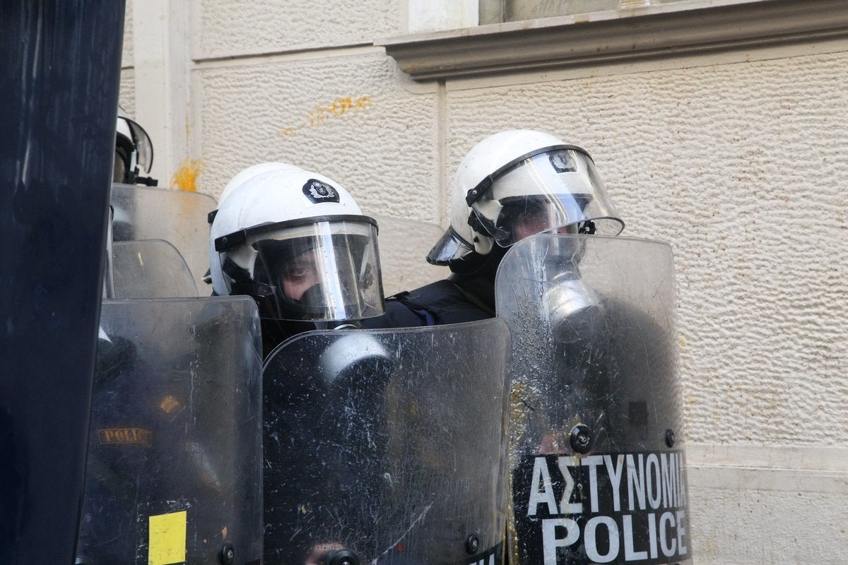 Επεισόδια μεταξύ οπαδών του Ολυμπιακού και ΜΑΤ έξω από ξενοδοχείο που θα μιλούσε ο Τσακαλώτος