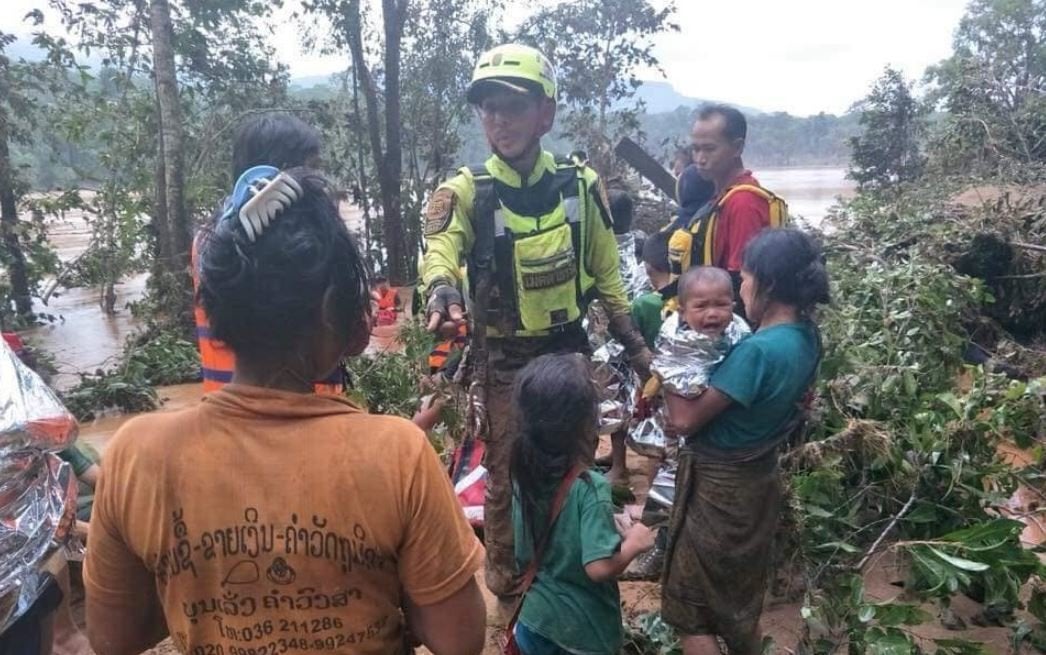 Λάος: Ένα μωρό που κλαίει στην αγκαλιά των διασωστών του προσωποποιεί την καταστροφή στη χώρα