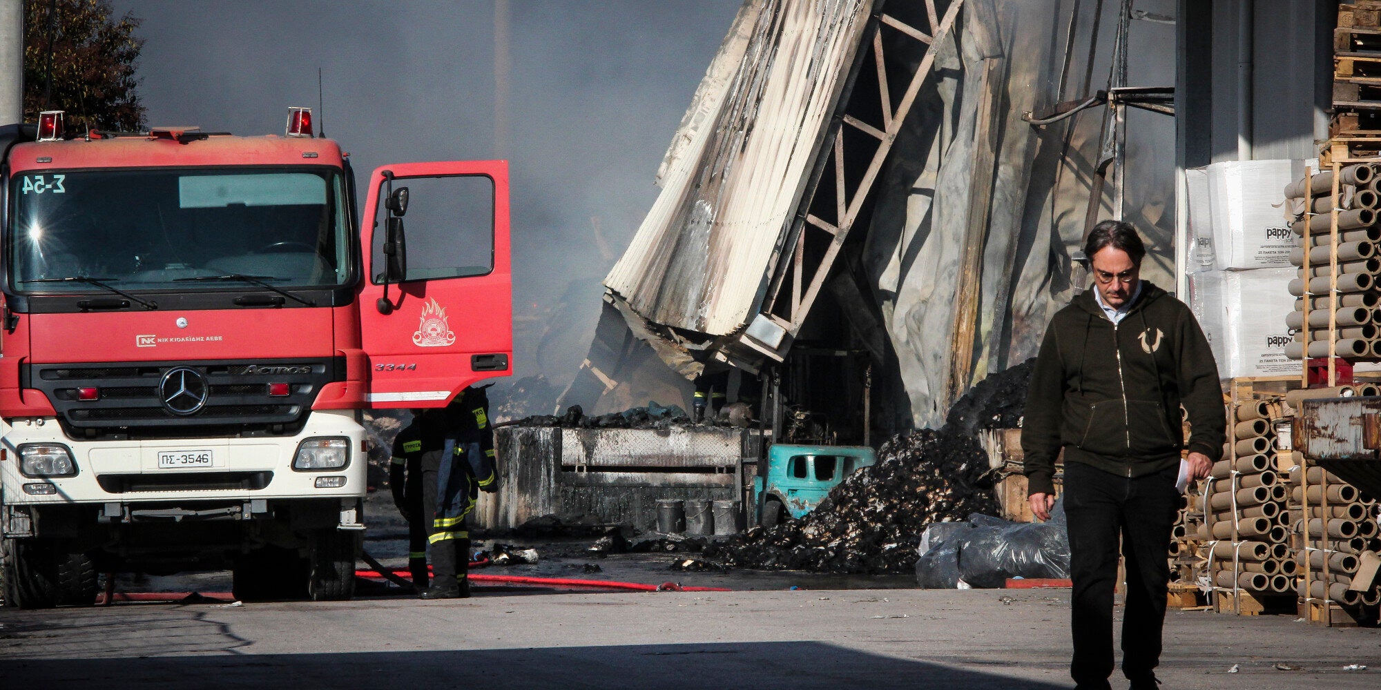 Μεγάλη πυρκαγιά σε βιομηχανία στο Μενίδι. Τραυματίστηκε ένας εργαζόμενος