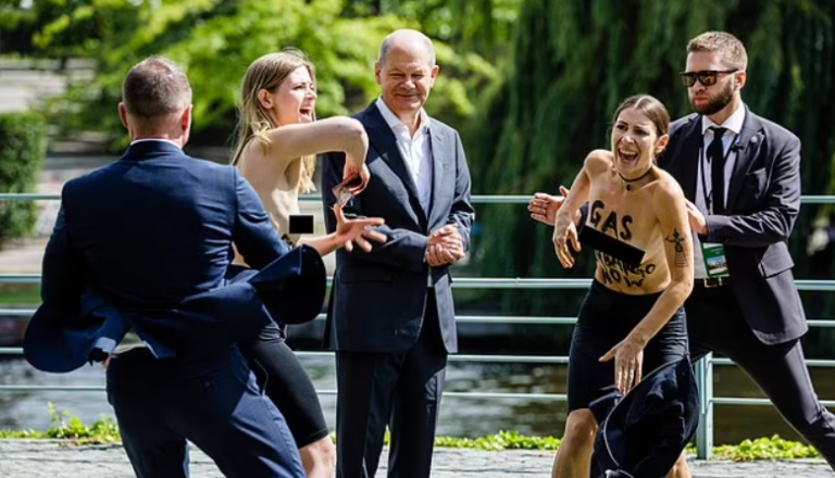 Γερμανία: Γυμνόστηθες διαμαρτυρόμενες διακόπτουν την ομιλία του Όλαφ Σολτς