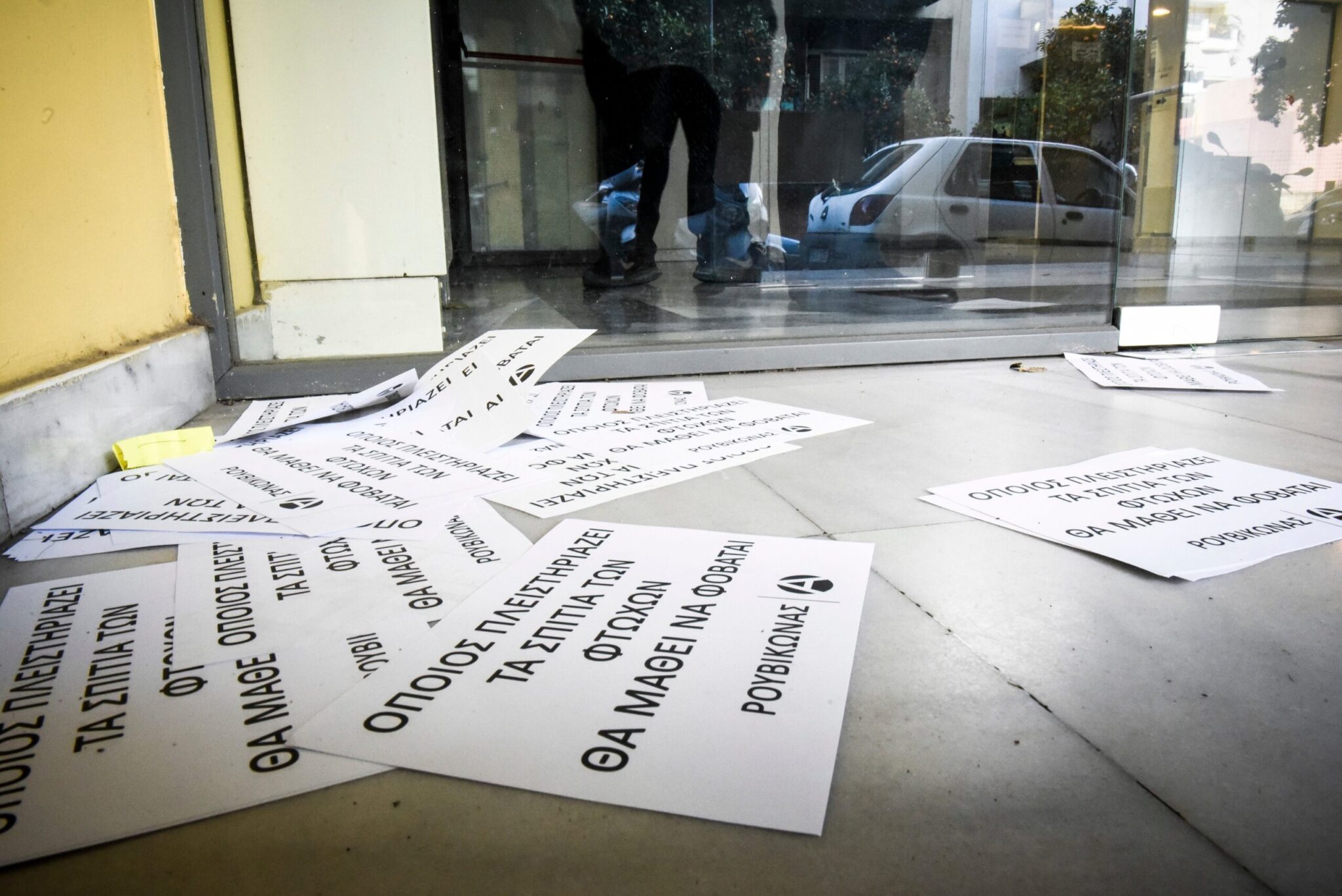 Πέταξαν φυλλάδια στο προαύλιο χώρο των δικαστηρίων στην Ευελπίδων μέλη του Ρουβίκωνα