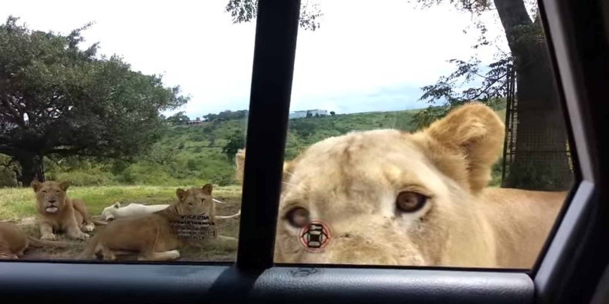 Λιοντάρι ανοίγει την πόρτα αυτοκινήτου γεμάτο ανθρώπους