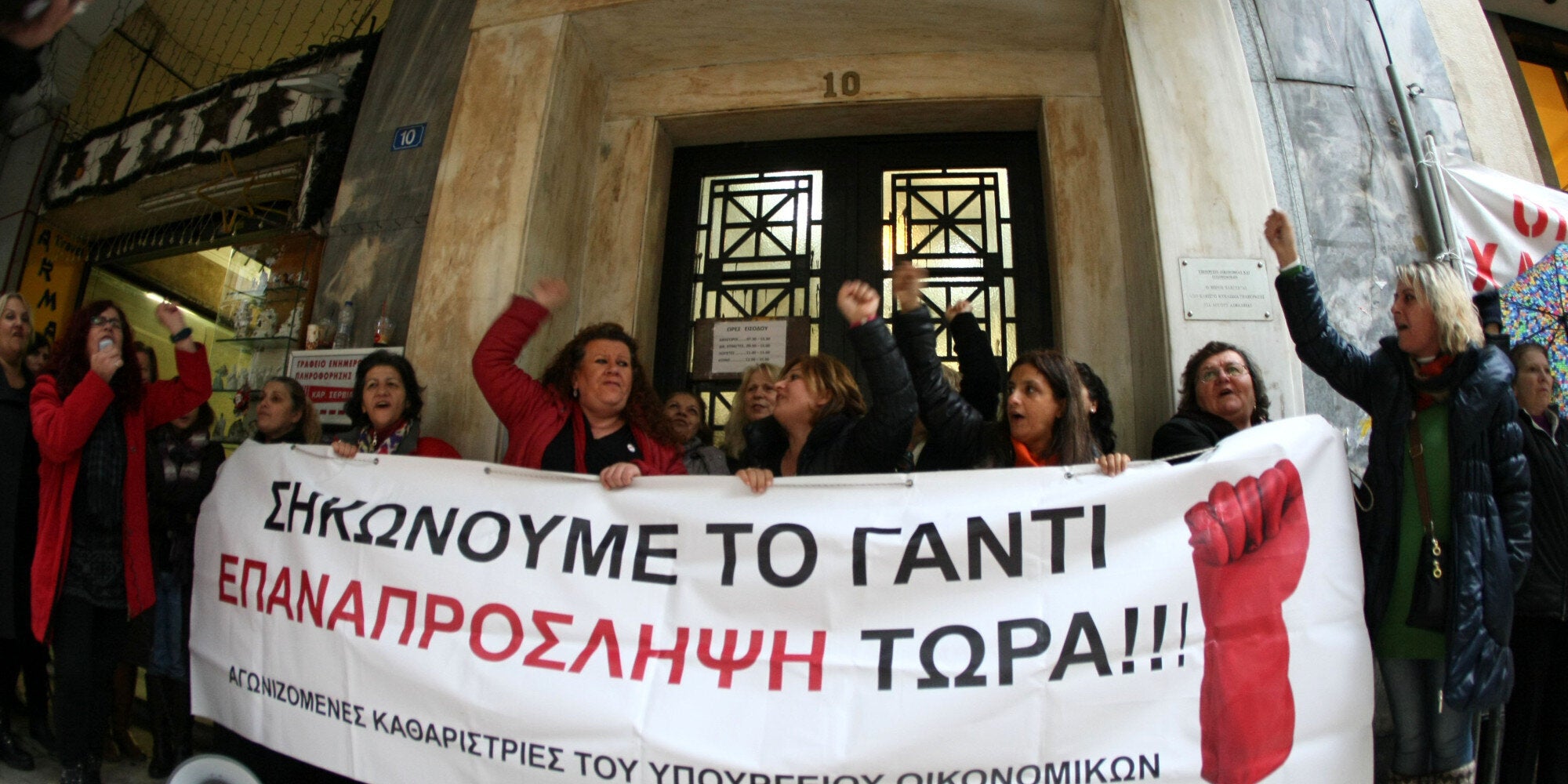 Με πανό έξω από το Υπουργείο Οικονομικών οι καθαρίστριες