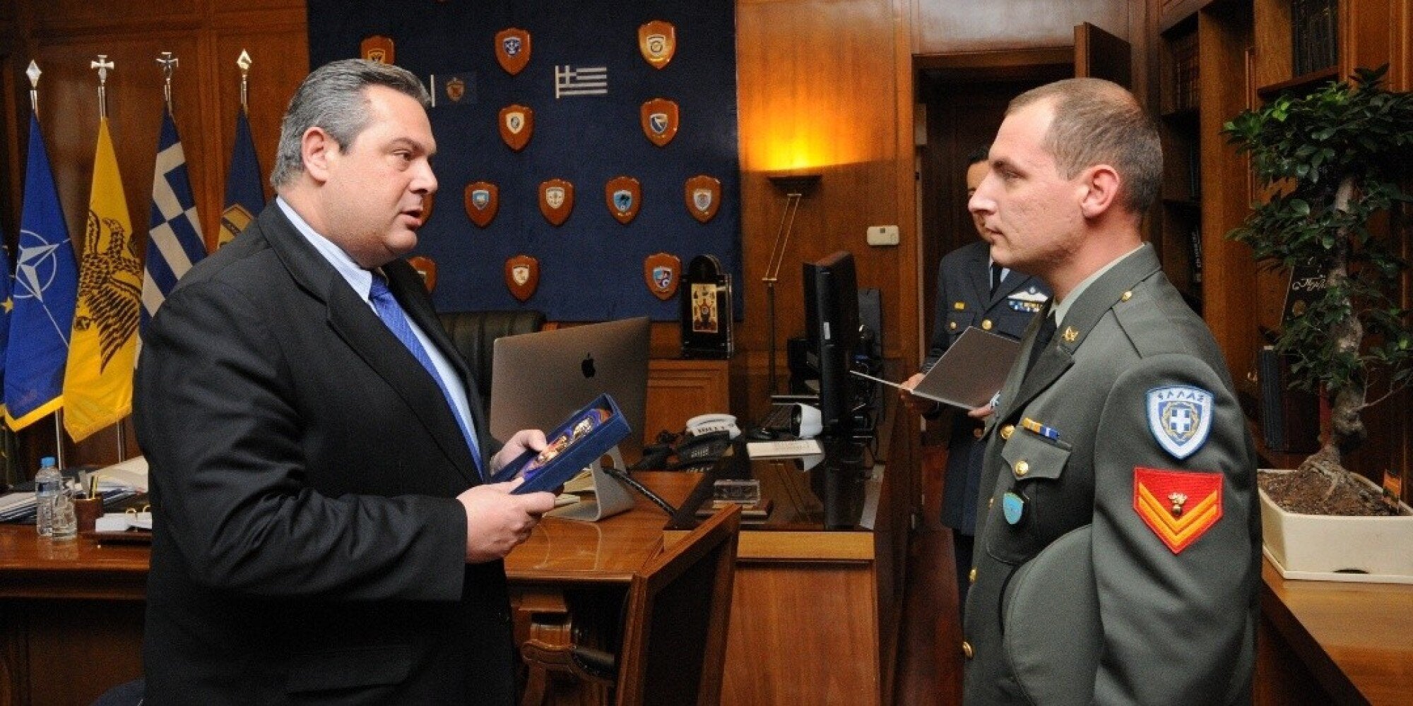 Ο Καμμένος τίμησε τον λοχία που βρήκε 3.000 ευρώ και τα παρέδωσε