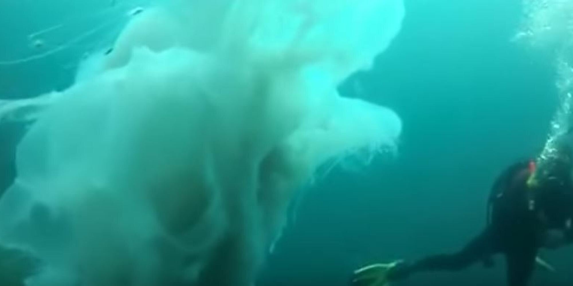 O ατρόμητος δύτης που τόλμησε να κολυμπήσει δίπλα σε μία τεράστια μέδουσα
