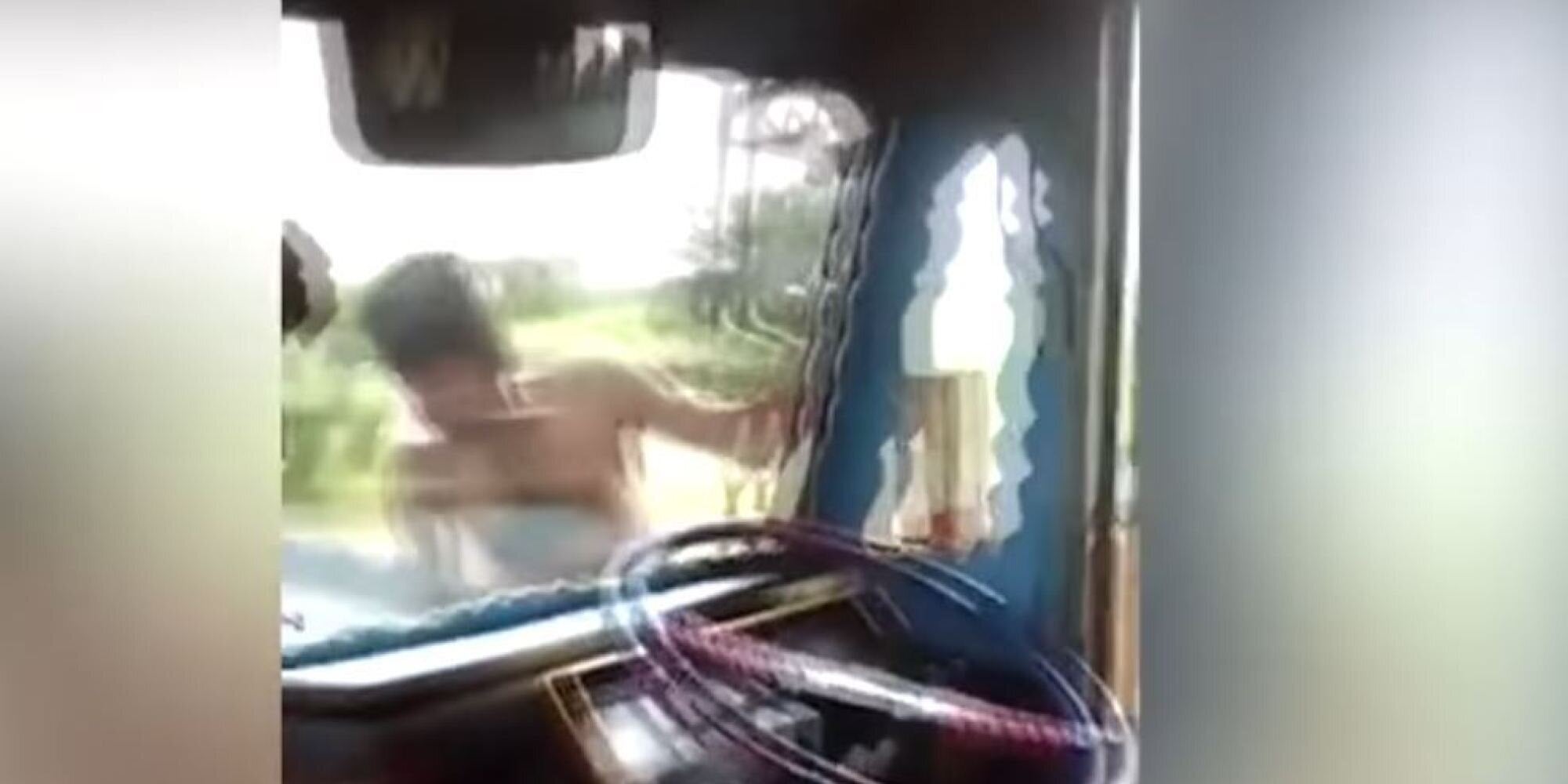 Oδηγός φορτηγού εν κινήσει αφήνει το τιμόνι και «κόβει» βόλτες γύρω από το παρμπρίζ