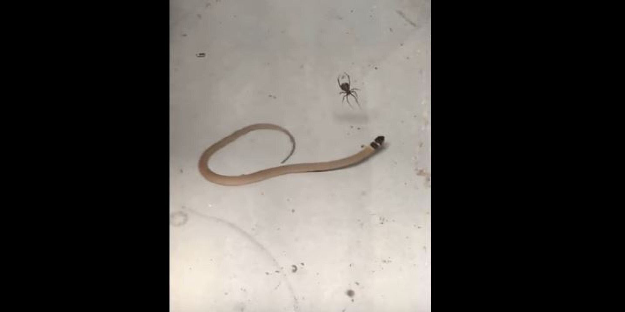 Εντυπωσιακή μάχη θανατηφόρας αράχνης με φίδι