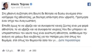 Τσίπρας: Κανένας συκοφάντης δεν μπορεί να διαβάλλει την εικόνα του πατέρα μου