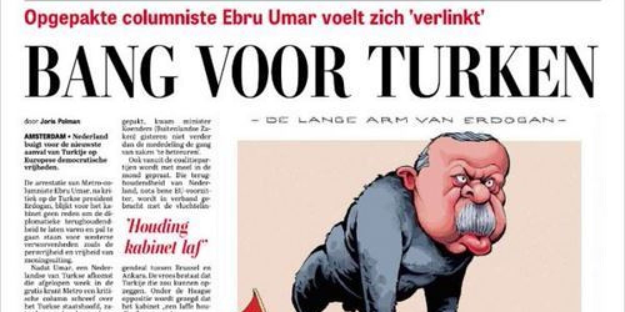 Σκίτσο με πιθηκόμορφη μορφή του Ερντογάν στο πρωτοσέλιδο της ολλανδικής De Τelegraaf