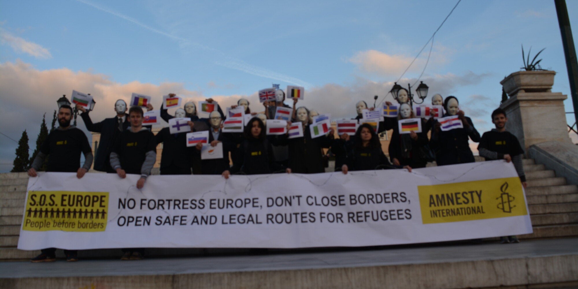 Διαμαρτυρία με λευκές μάσκες υπέρ των προσφύγων στην πλατεία Συντάγματος
