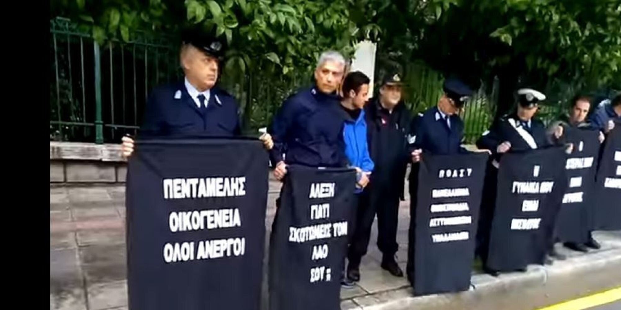 Αστυνομικοί διαμαρτυρήθηκαν με πλακάτ έξω από το Μέγαρο Μαξίμου