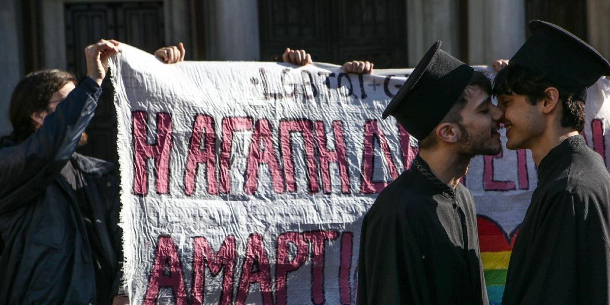 «Η αγάπη δεν είναι αμαρτία». Διαμαρτυρία με φιλιά έξω από την Μητρόπολη Αθηνών