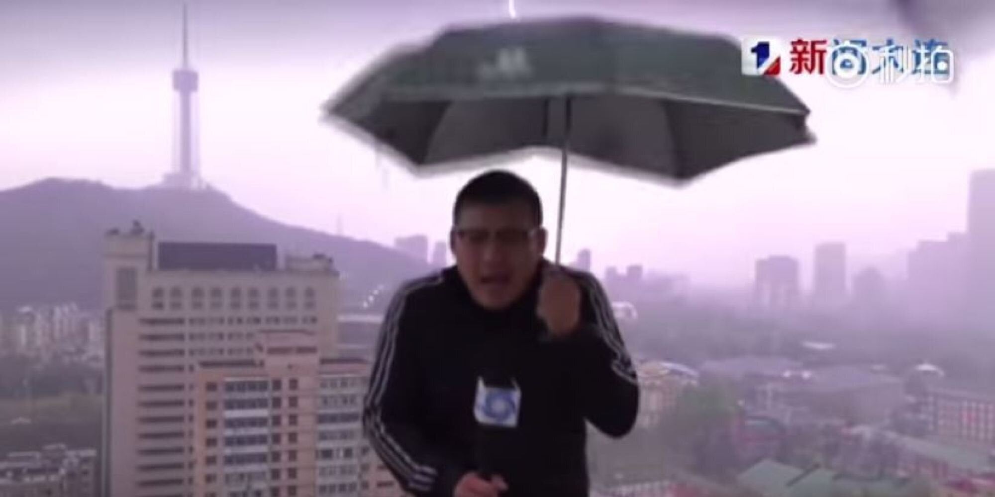 Κεραυνός χτυπά την ομπρέλα μετεωρολόγου σε ζωντανή σύνδεση