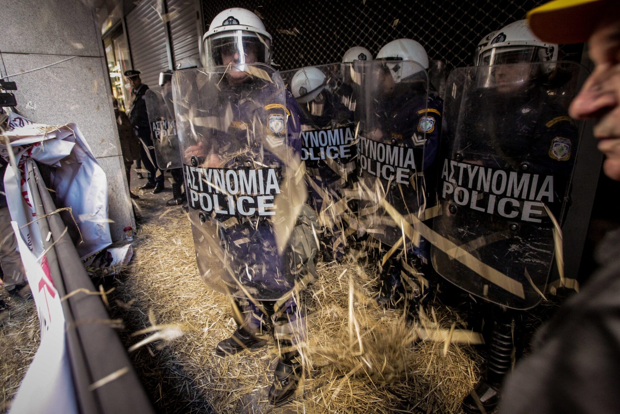 Διαμαρτυρία της ΠΟΕΔΗΝ έξω από το ΥΠΟΙΚ – Πέταξαν σανό και προσπάθησαν να μπουν στο κτίριο