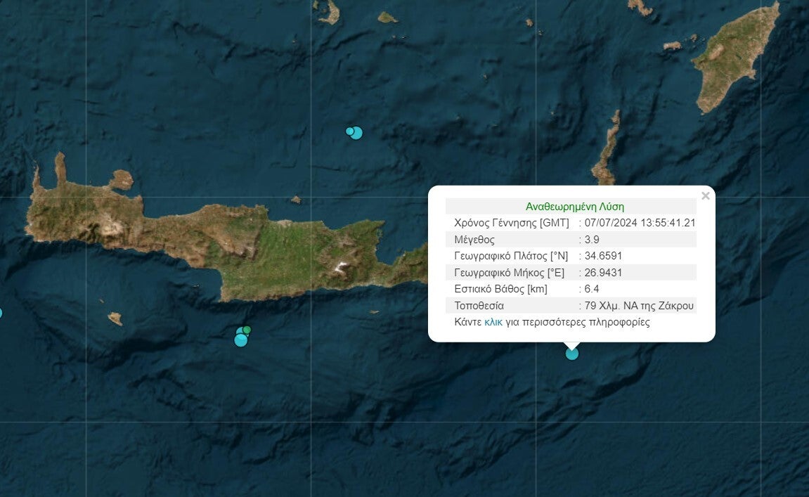 Σεισμός 3,9 Ρίχτερ ανοιχτά της Κρήτης