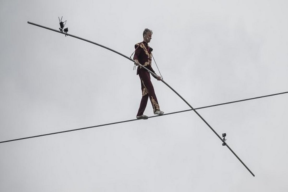 Ακροβάτης διέσχισε τον Δούναβη πάνω σε τεντωμένο σχοινί (βίντεο)