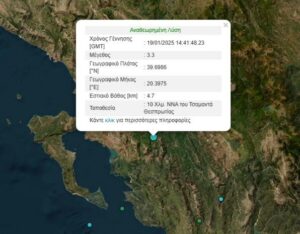Σεισμός στη Θεσπρωτία – Κοντά στον Τσαμαντά το επίκεντρο