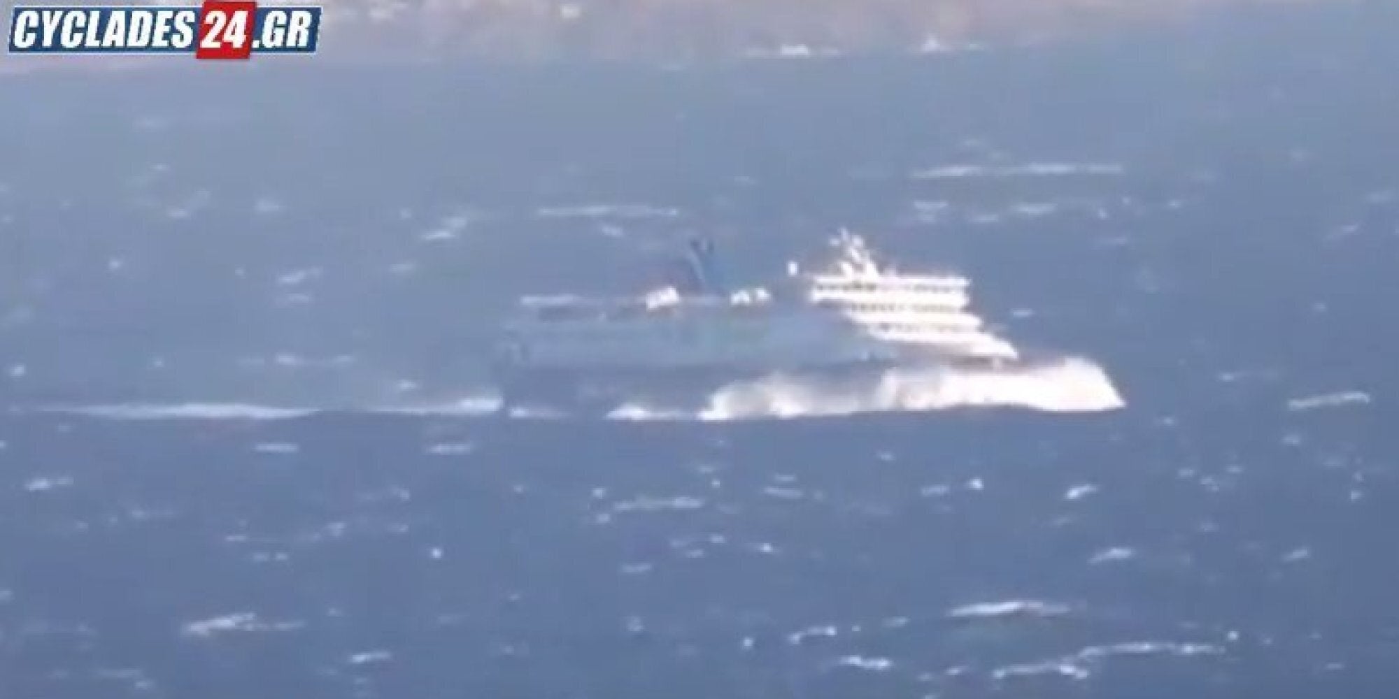 Κύματα «σκεπάζουν» πλοίο στο στενό Τήνου – Μυκόνου