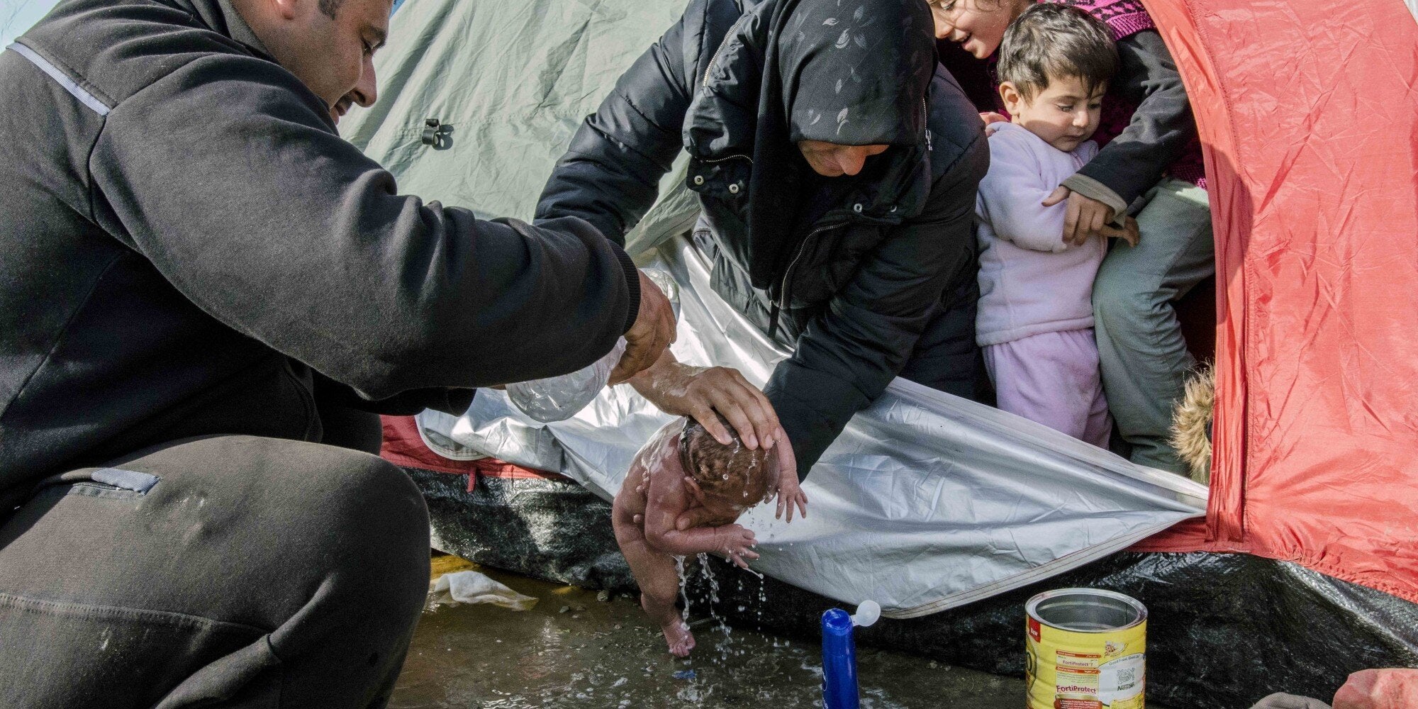 Ειδομένη: Γονείς κάνουν μπάνιο ένα βρέφος λίγων ημερών μέσα στις λάσπες