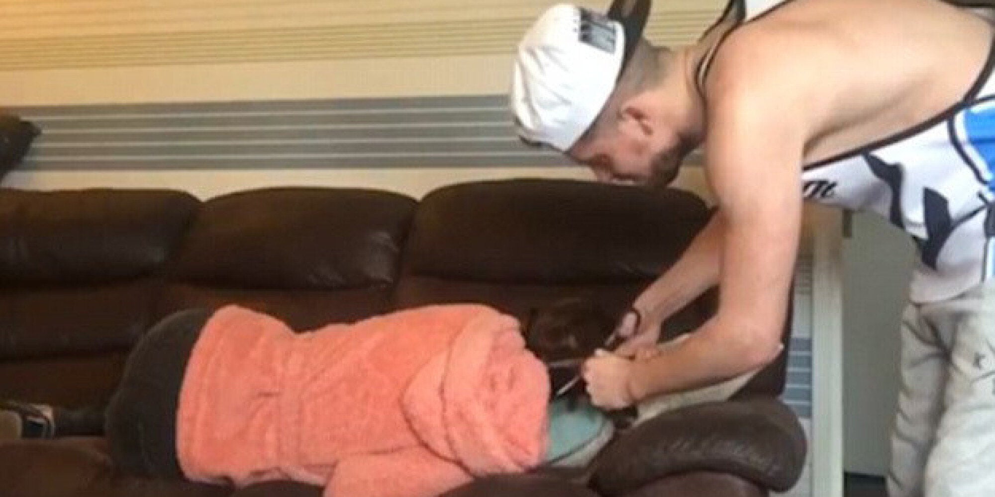 Ο πιο άκαρδος φαρσέρ του κόσμου ξαναχτυπά: Κόβει τα μαλλιά της κοπέλας του ενώ αυτή κοιμάται