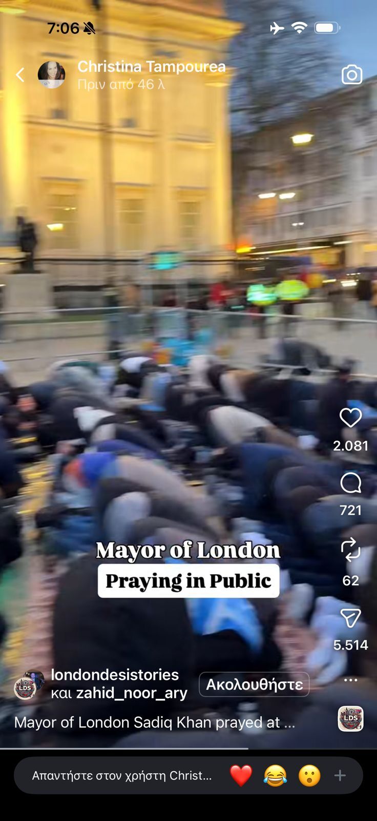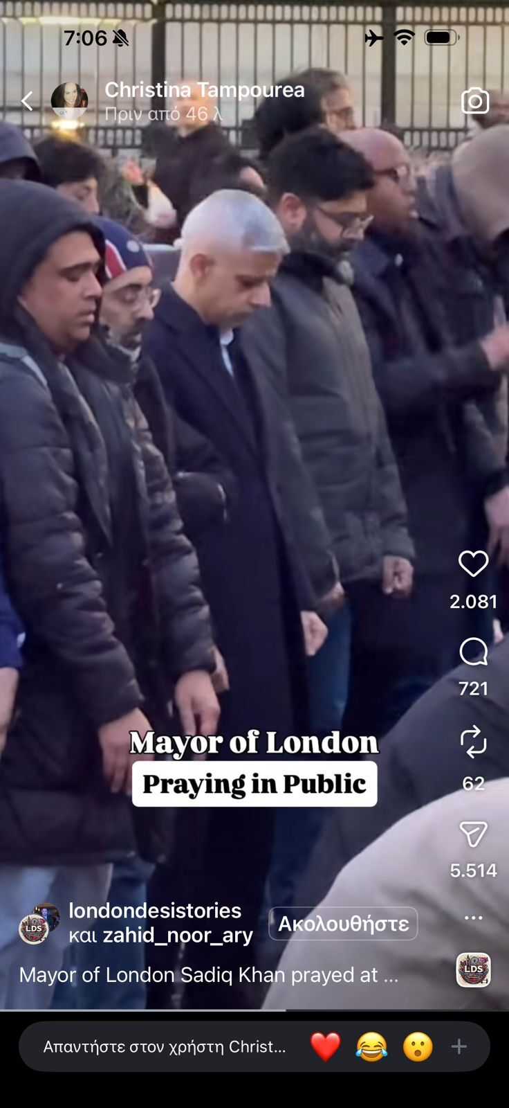 Ο 55χρόνος Καν υπηρετεί ως Δήμαρχος του Λονδίνου από το 2016 και συμμετείχε στην προσευχή των Μουσουλμάνων στην Πλατεία Τραφάλγκαρ του Λονδίνου μπροστά από την εθνική Πινακοθήκη.
