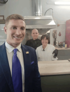Ο Χέλμπεργκ, σύμβουλος του Ντόναλντ Τραμπ σε θέματα ενέργειας, βρέθηκε σε σουβλατζίδικο στη Μητροπόλεως, όπου τον αναγνώρισαν και του ζήτησαν να φωτογραφηθεί με τους υπαλλήλους.
